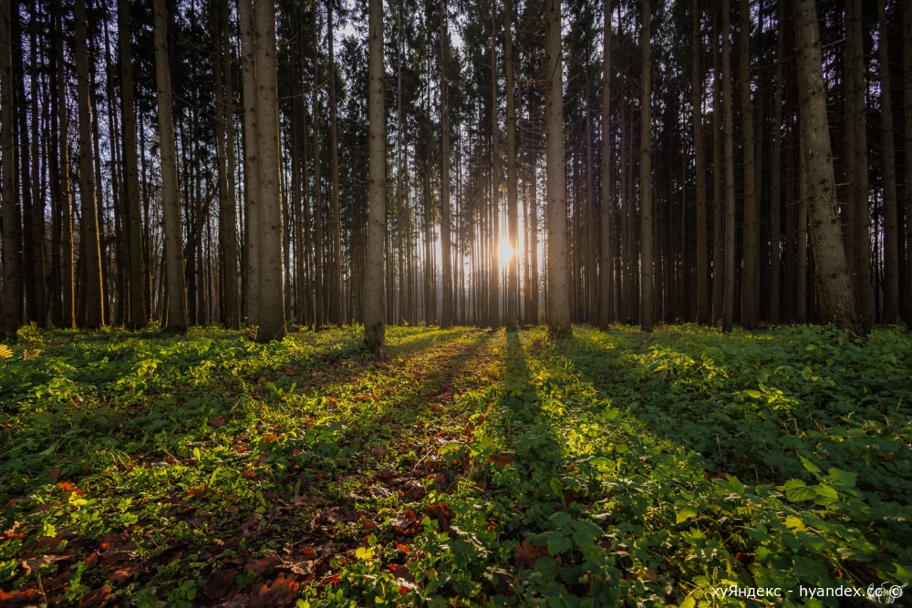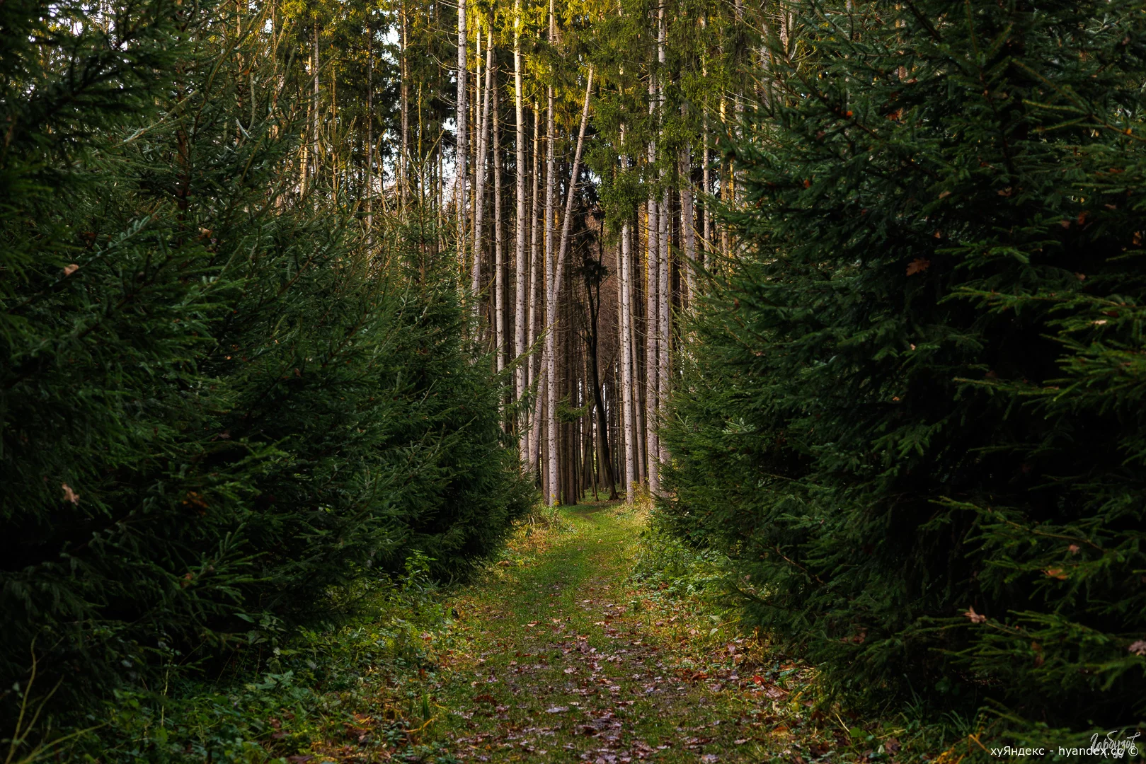 Стоит пройти чуть дальше, к еловым аллеям и строгим рядам сосен — там царит иная тишина. Лес прозрачен, лучи солнца скользят по стволам, вытягивая длинные тени.