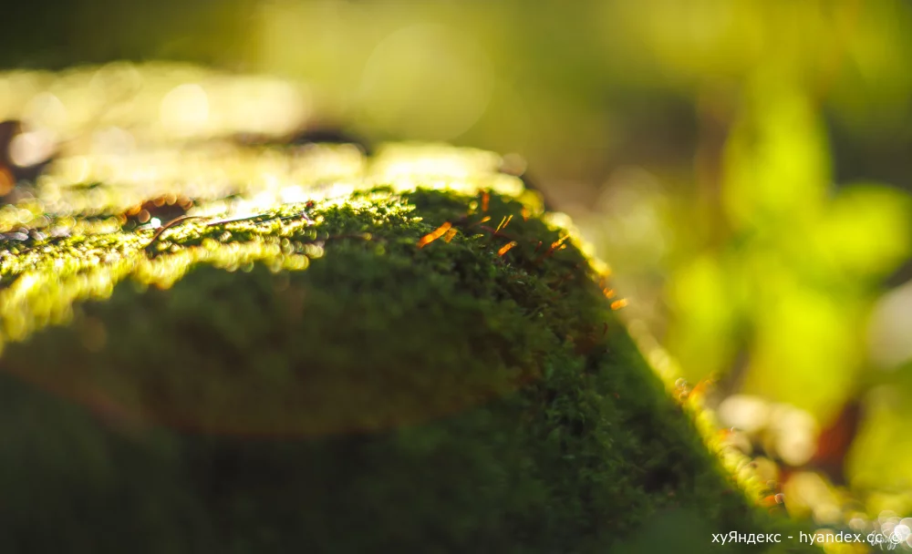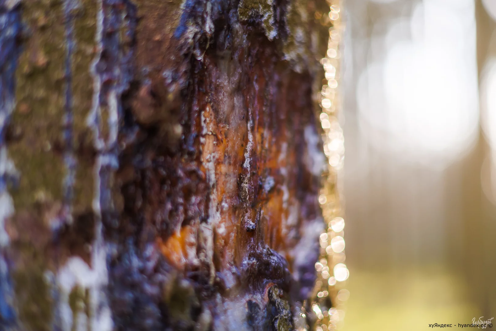 На мху поблёскивает влага, смола на деревьях блестит янтарём.