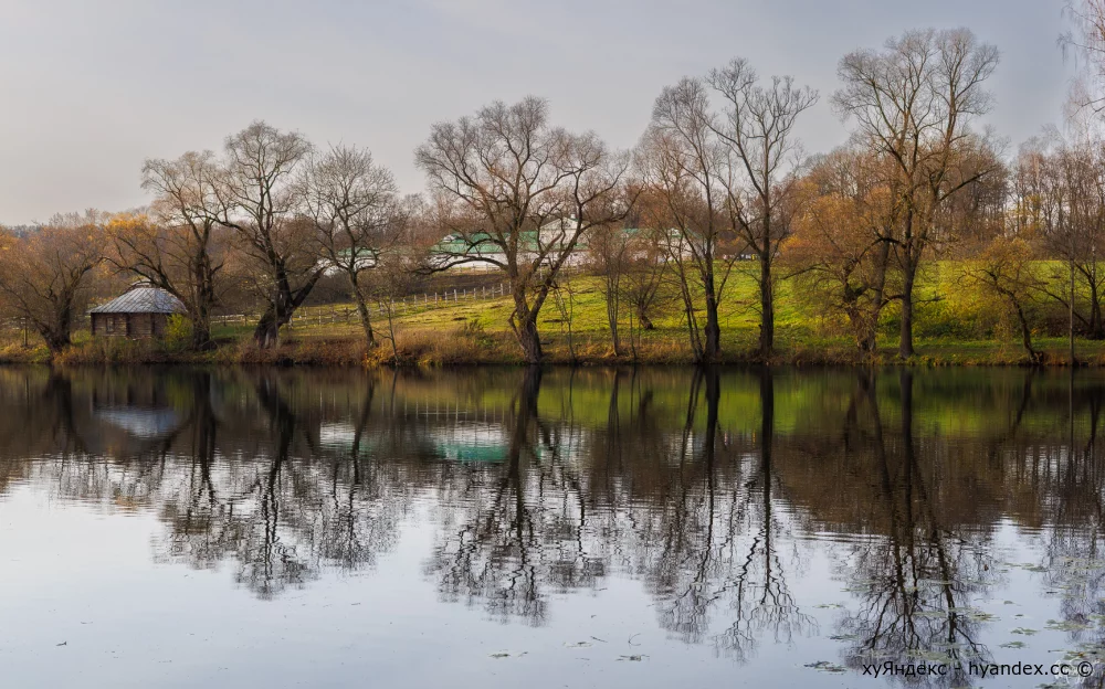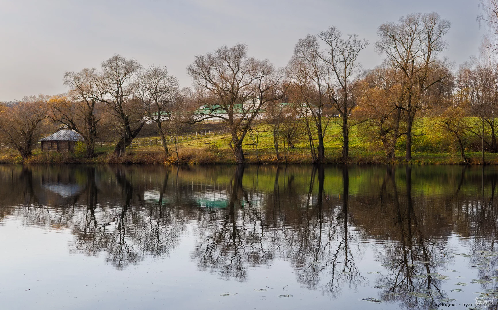 Пруды спокойно отражают и строения, и старые деревья по берегам. Всё вокруг будто ждёт — не конца, а короткой паузы перед новым дыханием. Листья ещё держатся, но в каждом листочке уже прячется прощание.