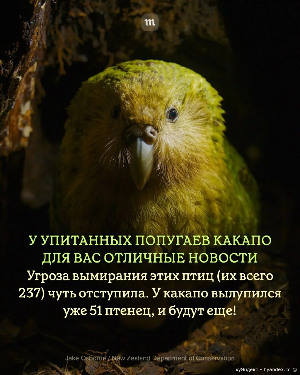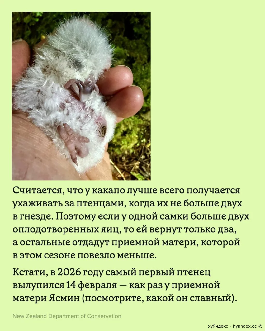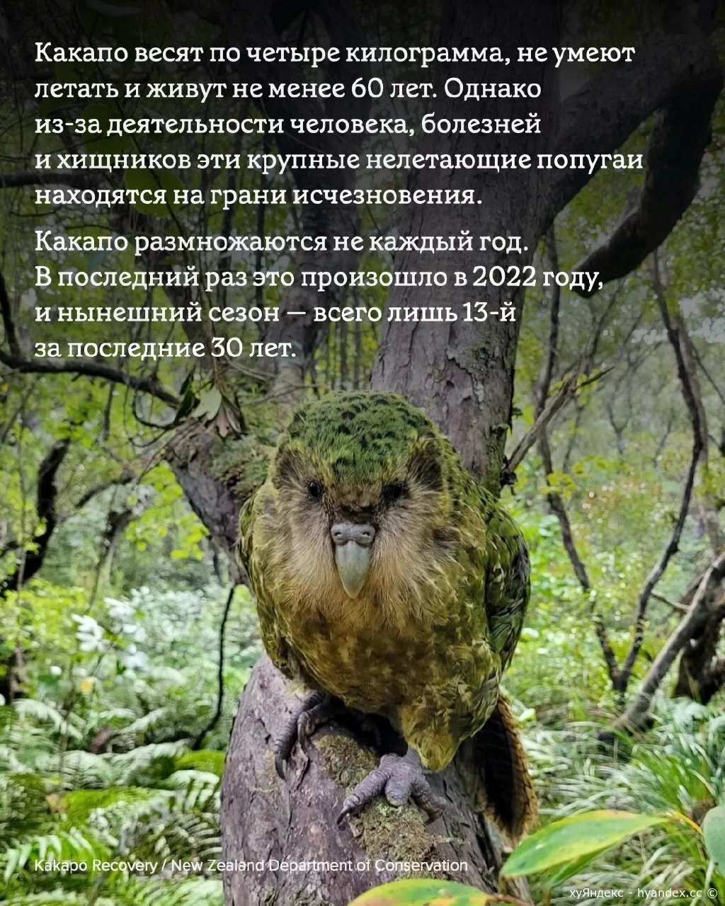 В марте 2026 года в популяции какапо крупнейшее за 50 лет пополнение. 11/03/2026 16:46 Мир природы 0 + 0 - XaOS 0 1