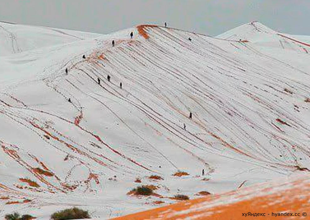 На северной окраине пустыни Сахара выпал снег — седьмой раз за последние 40 лет. В алжирском городе Айн-Сефра температура опустилась ниже нуля.
